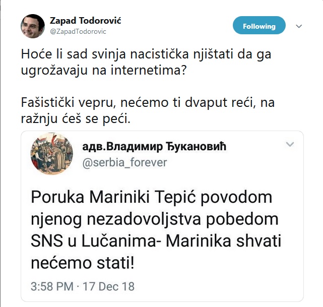 Ali je zato satirični profil, koji upravo takvo vulgarno ponašanje karikira, proglašen za loš i nad njim se zgražavaju čistunci na svim stranama. Za one koji su offline, koji žive stvarni život i ne navraćaju na društvenu mrežu Tviter kratko pojašnjenje: Daško tamo ne istupa pod svojim imenom, već vodi „zajebantski“ profil pod nazivom Zapad Todorović. Taj nalog bespoštedno secira naše društvo, ruši tabue i ukazuje na njihove mane, nedoslednosti, na zlo koje proizvode, na dvoličnost, na prostakluke koji se praštaju ako si “naš“, ali ne i ako si “njihov”, na svakovrsne podele i primitivizam s kojim se susrećemo.