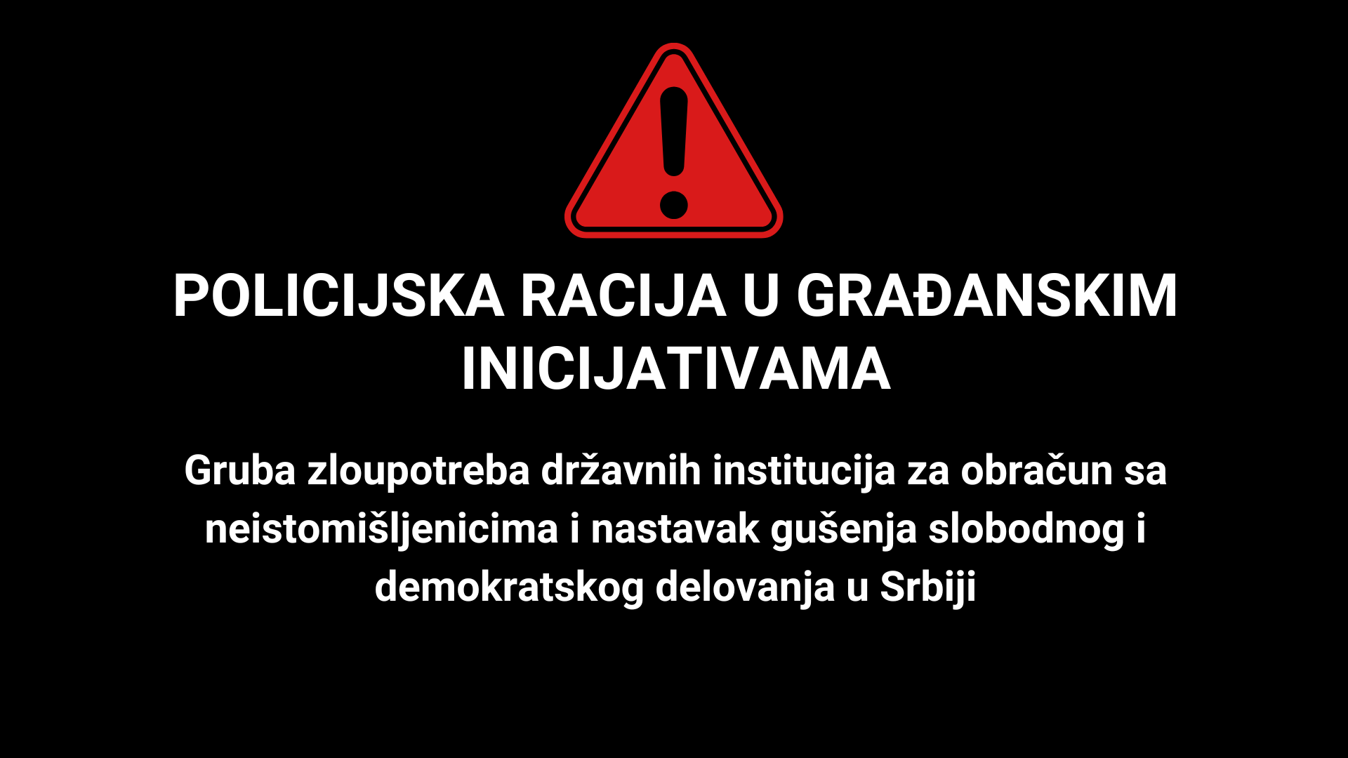 Ovo je ozbiljan napad na osnovna građanska prava i nastavak nezakonitog pritiska na civilno društvo u Srbiji. Vladajuće strukture pokušavaju da implementiraju mehanizme zastrašivanja i progona bez usvajanja Zakona o stranim agentima, koji je ušao u skupštinsku proceduru, ali još nije formalno usvojen. Ovakva upotreba policije u političke svrhe predstavlja grubo zloupotrebljavanje državnih institucija za obračun sa neistomišljenicima i nastavak gušenja slobodnog i demokratskog delovanja u Srbiji.