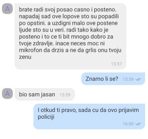 U porukama koje je preko vajbera Radetinac dobio stoji da u protivnom „neće moći ni mikrofon da drži“ i da je u onome što poručuje anonimni pošiljalac „bio jasan“.