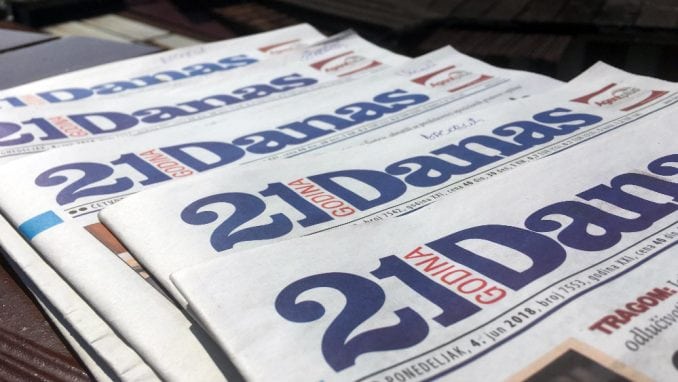 Dnevni list „Danas“ je napunio 21. godinu. Malo li je na ovu skupoću? Punoletan je tako da čak i u puritanskoj i trezvenjačkoj Americi može da uđe u dragstor i kupi si pivo da proslavi.
