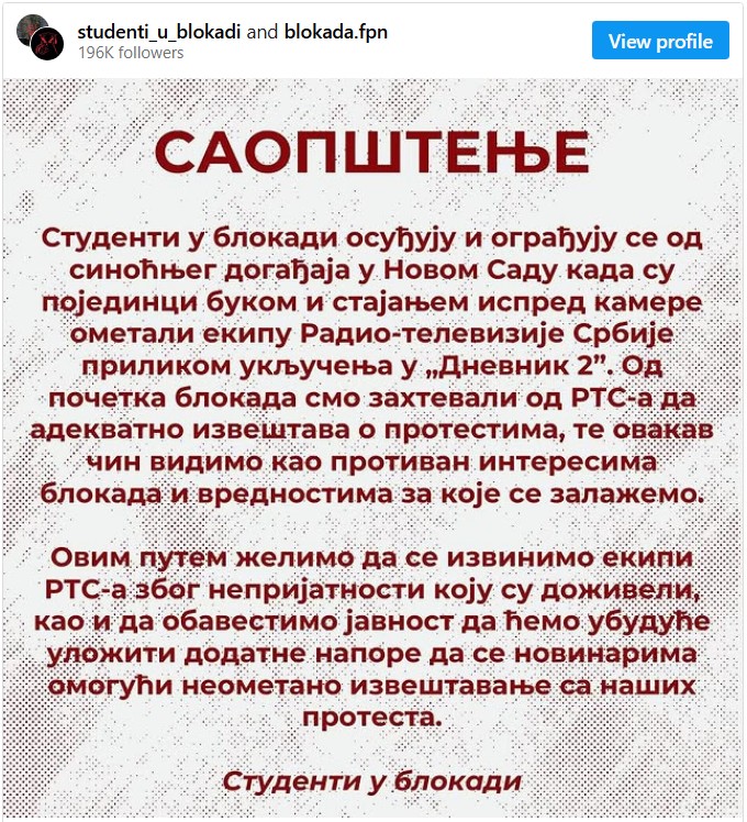 “Od 1. novembra pa na dalje - nismo mogli da vidimo i čujemo ono što smo priželjkivali i što bi trebalo da bude na programu javnog servisa, naročito ako uzmemo u obzir da se sve desilo u Novom Sadu”, rekla je novinarka RTV-a Tamara Srijemac.