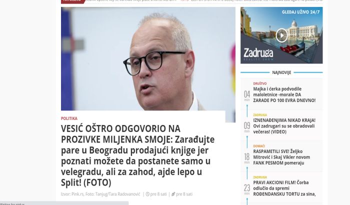 U okviru emisije na TV Pink, u kojoj je gostovao predsednik Srbije Aleksandar Vučić, prikazan je snimak ubistva Vlastimira Miloševića iz 2017. godine. Takođe, kasnije je tokom emisije pokazana fotografija na kojoj je, kako je predsednik naveo, "tranžirano ljudsko meso", jedne od ubijenih osoba u kući u Ritopeku, koju je koristila kriminalna grupa okupljena oko Veljka Belivuka.