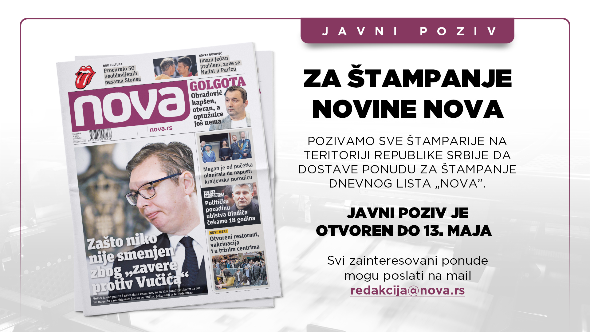„Pozivamo sve štamparije na teritoriji Republike Srbije da dostave ponudu za štampanje dnevnog lista ‘NOVA’”, navodi se u pozivu redakcije.
