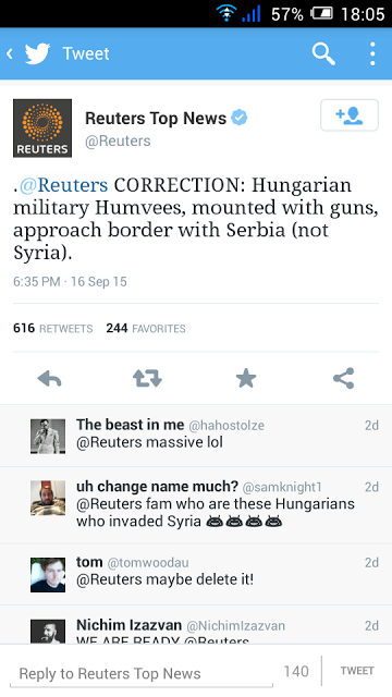 Tako se agencija Rojters prošle nedelje zbunila (i ubrzo ispravila) o tome da li se Mađarska graniči sa Sirijom ili Srbijom.