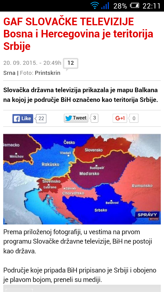 I slovačka televizija se zbunila gde se nalazi Srbija, a gde Bosna i Hercegovina. O tome nas je takođe obavestio Blic: