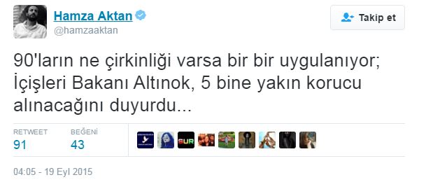 Tweet 4: Implementiraju se svi prljavi trikovi iz devedesetih; Ministar unutrašnjih poslova Altınok kaže kako treba regrutirati oko 5.000 seoskih stražara.