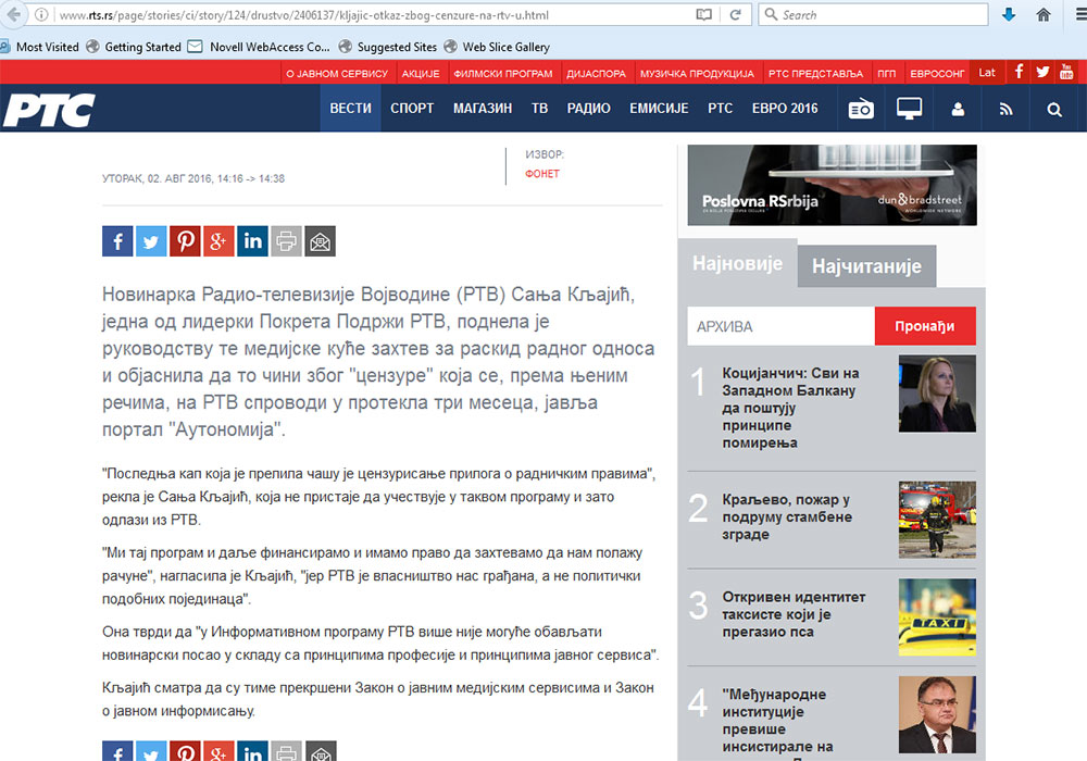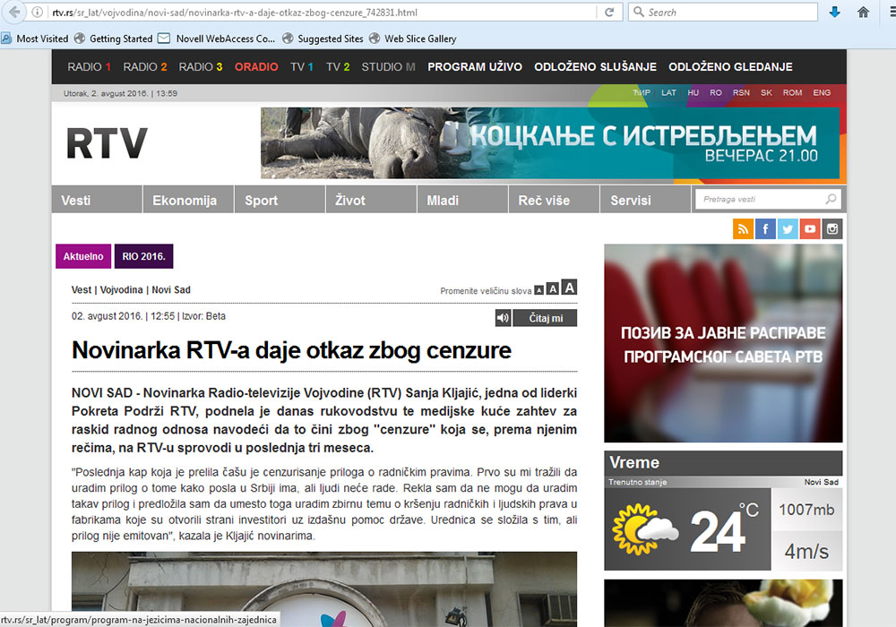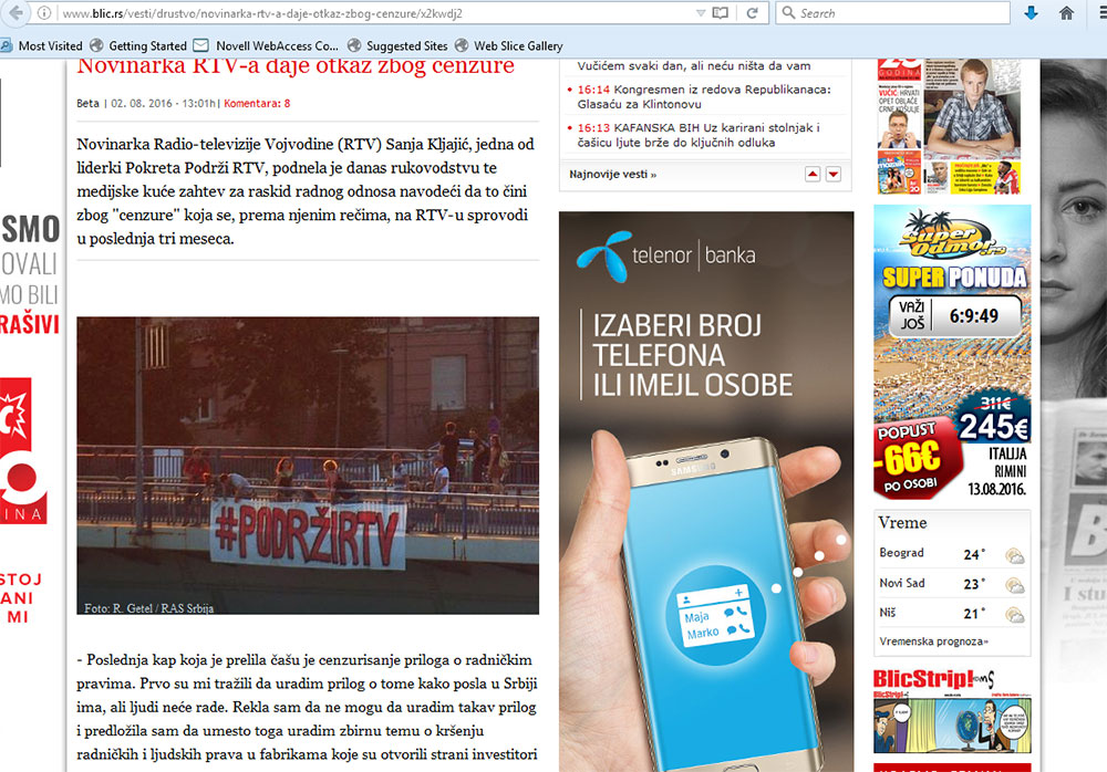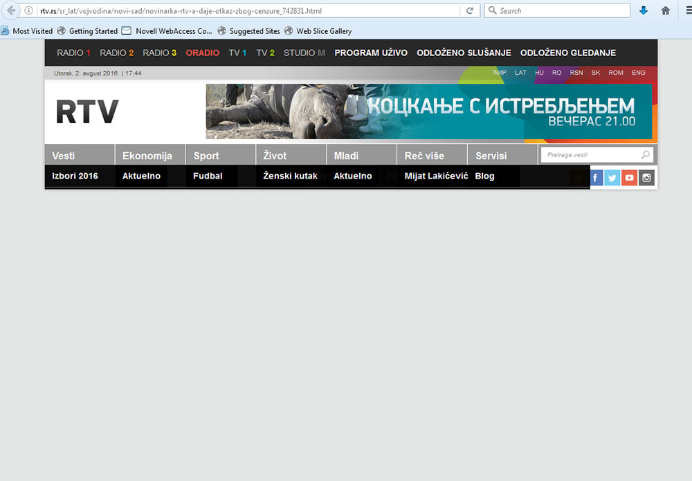 Ilustrovaću tu tvrdnju najnovijim slučajem delimično uspele cenzure. Primer se sastoji od pet slika. Na prvoj (Slika 1a i 1b) vidimo vest na sajtu Radio televizije Vojvodine od 02.08.2016 (neka čitaoci ne zamere što nije postavljen link ka vesti, upravo je o tome ovde i reč).