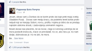 „Jesam, otišao sam u Donbas da se borim protiv zla koje preti mojoj svetoj Otadžbini Rusiji… Došao sam među braću, da podelimo teret borbe protiv neljudi koji se klanjaju Sotoni, novcu, profitu i kojima je bitno da se predaju najnižim oblicima strasti, i zadovoljenju animalnih nagona“, napisao je Počuča.