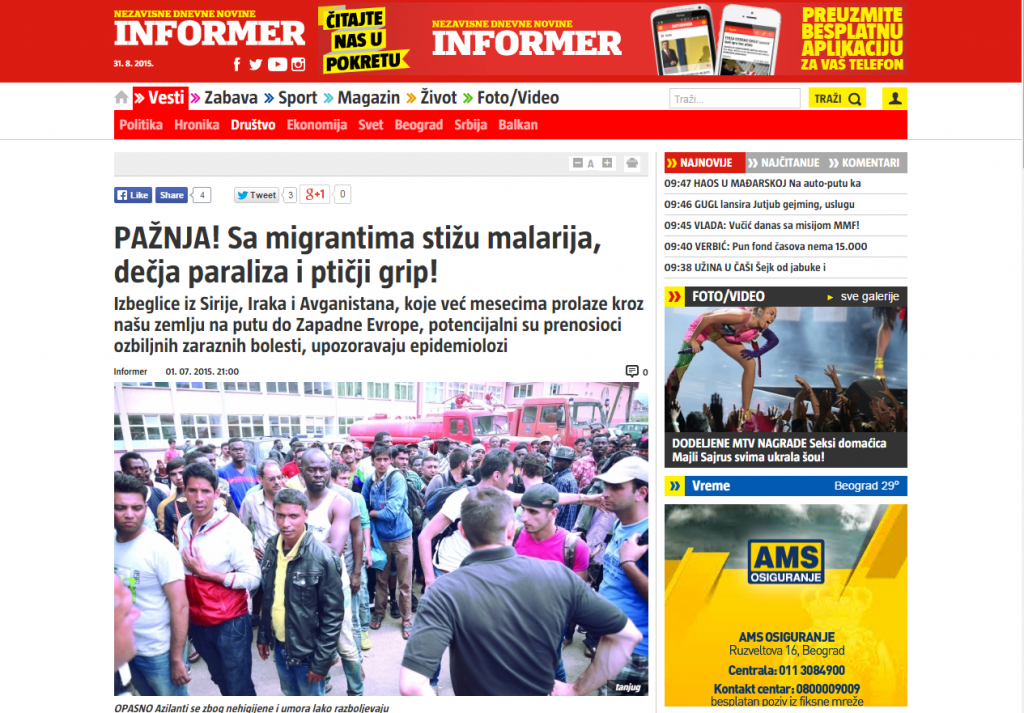Poverenica za zaštitu ravnopravnosti je, postupajući po pritužbi Praxisa, zaključila da u članku „PAŽNjA! Sa migrantima stižu malarija, dečja paraliza i ptičji grip!”, koji je dnevni list Informer objavio 1.7.2015. godine, nema povrede prava prema Zakonu o zabrani diskriminacije