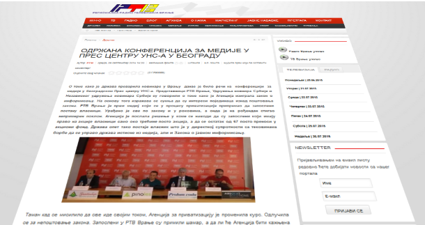 Agencija za privatizaciju je na najgori mogući način „bahato“ prekršila Zakon o javnom informisanju i medijima i „izvršila pljačku“ na račun države u postupku privatizacije RTV Vranje, upozorili su danas predstavnici te medijske kuće i novinarska udruženja i zahtevali od Vlade Srbije da se izjasni o tom slučaju.