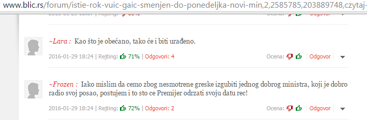 – Uglavnom i ne pročitam vest, samo mehanički pišem komentare. Blic je najbitniji, B92, Telegraf, Kurir… Imaš prioritetne vesti, kad nemaš vremena, moraš prvo to da uradiš, pa onda ostalo. Na Tviteru treba da lajkuješ i retvituješ, uglavnom Vučićeve tvitove. Imaš i spisak ljudi koje treba da zapratiš, a treba i tebe dosta ljudi da zaprati. Sve mi je pod lažnim imenom, i kad pišem komentare uvek izaberem neko drugo ime. Naravno, da ne bi bilo očigledno, pored ovih treba da imaš i neke privatne objave – kaže Milan.