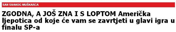 Tako, npr. u članku posvećenom nogometašicama stoji: „Zgodna, a još zna i s loptom: američka ljepotica od koje će vam se zavrtjeti u glavi igra u finalu SP-a!“.