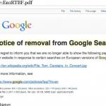 Vikimedija, u čijem sastavu je i internet enciklopedija Vikipedija, dobila je od Gugla više obaveštenja o linkovima na njene sadržaje koji se više ne prikazuju u rezultatima pretrage. U fondaciji smatraju da je to cenzura i da stvara rupe u pamćenju na internetu.
