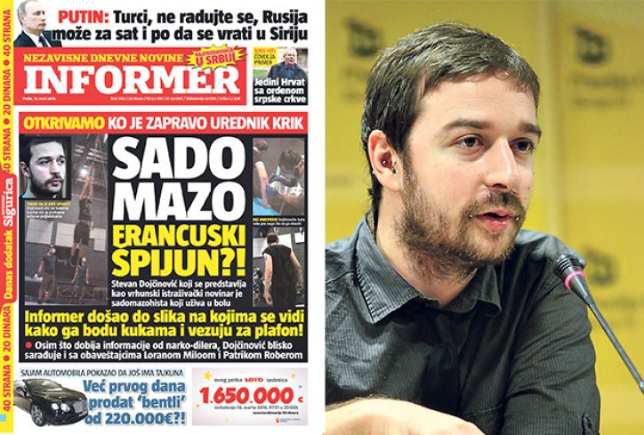 U jučerašnjem broju Dojčinovića su označili kao saradnika narko-dilera, francuskog špijuna i sado-mazohistu, objavljujući pritom fotografije iz Dojčinovićevog privatnog života!